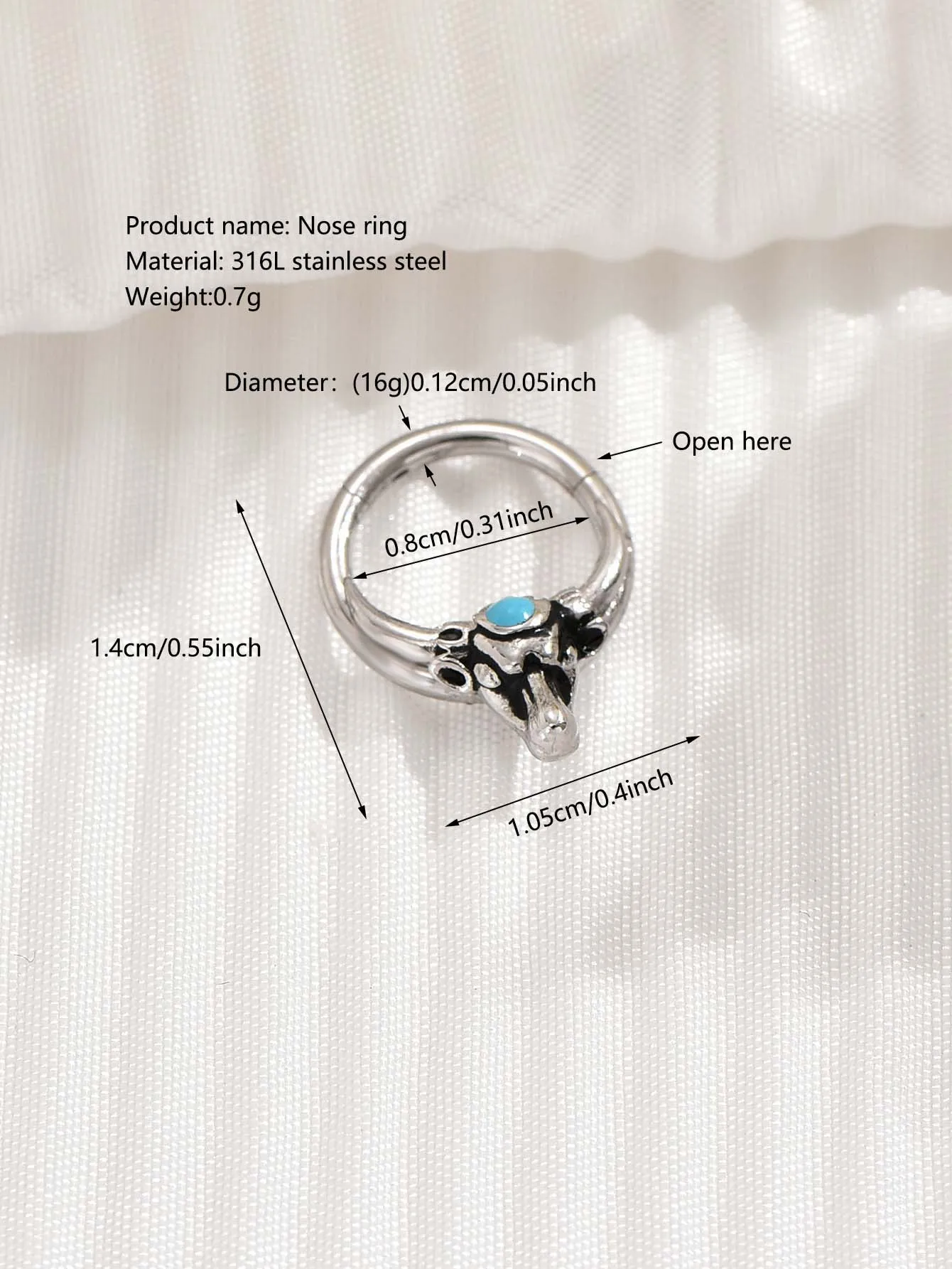 Fashion Cow Ox Head Stainless Steel Septum Hoop Clickers Nose Ring Women Tragus Cartilage Helix Piercing Hoop Earrings Jewelry